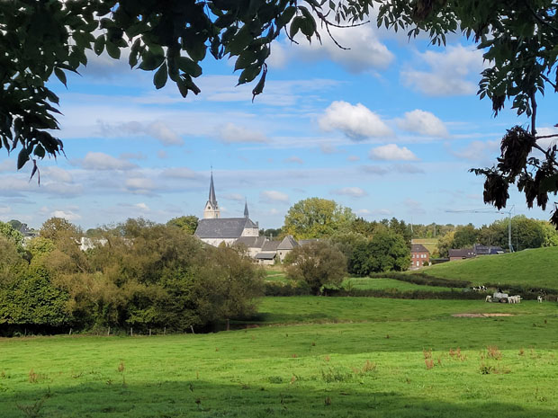 Bij het binnenrijden van Noorbeek merken we dat er vandaag een georganiseerde wandeltocht plaatsvindt. Wij gaan bij het krieken van de dag op pad en hebben dus nog even alle rust en ruimte. We lopen achterom bij Café Tinus, de sponsor. Meteen duiken we hier het groen in en zien het daglicht zich stilaan over het glooiende landschap verspreiden. De route is eigenlijk een speurtocht. Het speuren naar de antwoorden op de vragen laten we graag aan notoire speurneuzen over. Mocht er echter een prijs worden uitgereikt voor het speuren naar een prachtig landschap en bijzonder erfgoed, dan staan we vandaag wel op het podium. In Mheer lopen we steil de doorgaande weg omhoog en verkennen even de binnenplaats van Kasteel Mheer. Niet het enige bouwwerk het vermelden waard vandaag want het is ons al duidelijk dat we in de streek van de vakwerkhuizen struinen. Terug de natuur in zetten we koers richting Banholt waar we bij binnenkomst een prachtig panorama genieten op o.a. de Sint-Pietersberg in Maastricht. Op de terugweg naar Noorbeek zien we de deelnemers van de wandeltocht druppelsgewijs het glooiende landschap binnensijpelen. Zij welgemutst Noorbeek uit, wij even vrolijk de andere richting uit Noorbeek terug in. Zij aan het begin van hun avontuur, wij de longen vol zuurstof en een wandelervaring door een mooi uitgestrekt landschap rijker🙏
