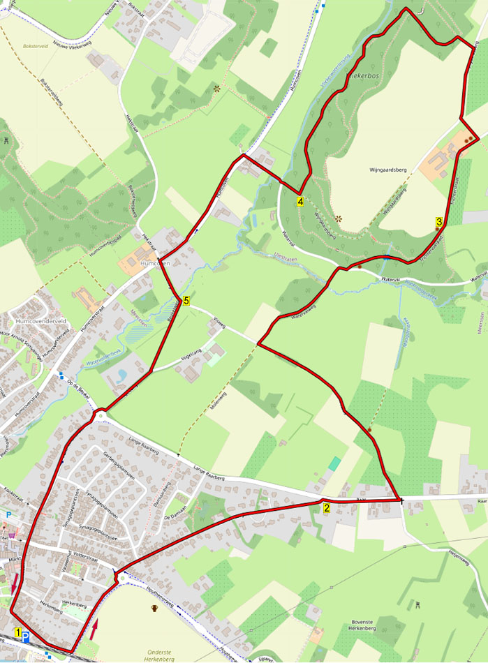 Via leuke paden/wegen loopt u vla de buurtschap Raar naar het hooggelegen Wijndomein de Wijngaardsberg. Hier heeft bij zitbanken mooi uitzicht. Via het Vliekerbos en langs de Markt, waar u de prachtige basiliek zeker even moet bezoeken, loopt u weer terug.