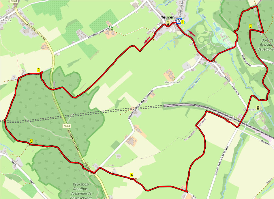 Deze wandeling, met hellingen gaat langs het Veursbos met schitterend uitzicht op het Veursdal, naar Remersdaal. Dan langs kasteel Obsinnich en door het Onderstebos terug.