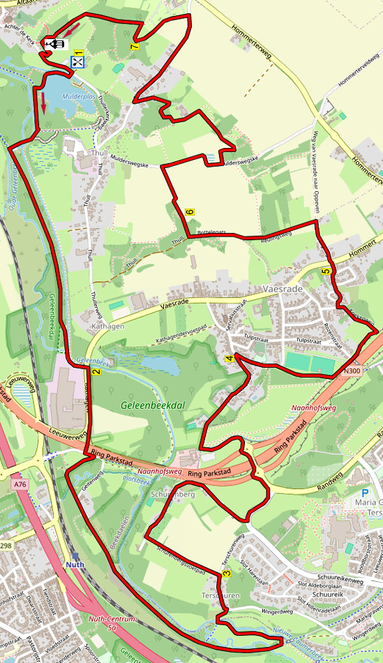 Deze wandeling met hellingen gaat vanaf de Mulderplas langs de Geleenbeek naar Schuureik via Thull en de Krekelberg terug naar de Mulderplas.