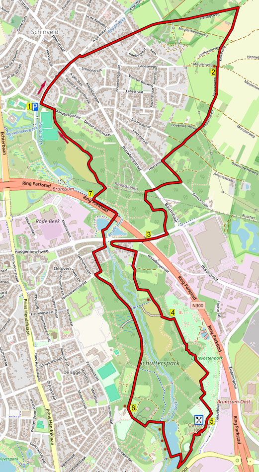 Tijdens deze gemakkelijke wandeling, met een paar lichte heuveltjes, loopt u door de Schinveldse bossen naar het Schutterspark in Brunssum, waar genoeg zitbanken staan (Neem oud brood mee voor de eenden). U kunt halverwege pauzeren bij Park Het Plateau. De terugweg gaat door het bos en langs de mooie Kattekoelenvijvers.
