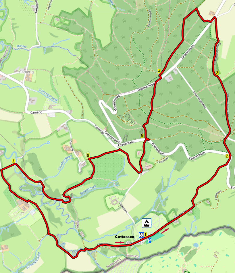 Deze wandeling start op een van de mooiste plekjes van Zuid-Limburg: de buurtschap Cottessen. Tijdens deze pittige wandeling met hellingen loopt u eerst omhoog naar het Vijlenerbos. Na een ruime boswandeling wandelt u omlaag door boomgaard Bellet en langs de Heimansgroeve. Het laatste stuk gaat door weilanden langs de Geul. Tijdens de hele wandeling heeft u schitterende uitzichten en passeert u vakwerkhuizen. Er staan voldoende zitbanken. Aan het eind is een mooi terras ( kijk voor openingstijden op hun eigen website).