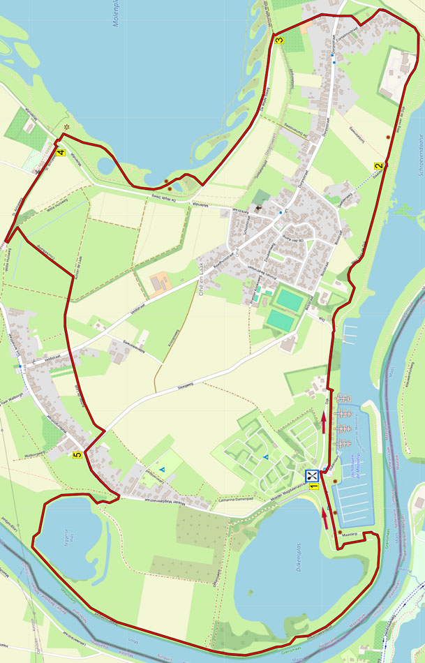 Tijdens deze vlakke en gemakkelijke wandeling langs de waterkant wandelt u eerst een mooi stuk langs de Schroevendaalse plas naar de prachtige Molenplas. Dan loopt u over veldwegen naar de Teggerse plas waar u mogelijk Konikpaarden en/of Gallowayrunderen tegenkomt. Na een mooi stuk langs de Maas door de beemden komt u bij de jachthaven en Dilkensplas. U kunt deze route prima combineren met wandeling 638 tot een afstand van 16,3km. Vanuit de Hompesche Molen kunt u ook combineren met wandeling 642..
