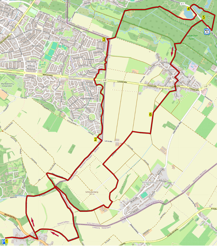Tijdens deze licht heuvelachtige en grensoverschrijdende wandeling, wandelt u over mooie voetpaden langs de rand van Sittard, naar het dal van de Roodebach. U loopt door de bossen van het oude Safaripark Tüddern en dan passeert u een groeve met een meer. Na een bezoekje aan een superklein schiereilandje in een vijver, wandelt u door het bos naar restaurant Waldschenke voor een pauze. De terugweg wandelt u door het bos naar het Duitse plaatsje Wehr en dan loopt u door velden en langs bosranden terug naar Windraak. Er staan enkele zitbanken onderweg. U kunt de route inkorten tot 13 km maar dan moet u zelf drinken meenemen.
