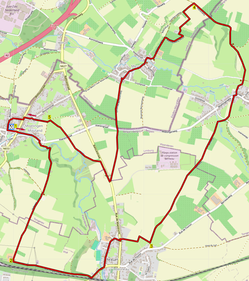 Tijdens deze heuvelachtige open wandeling wandelt u eerst via veldweg omhoog naar een verlaten plateau en loopt u naar het Franstalige dorp Berneau. Hier verlaat u via weilanden het dorp en dan volgt u een mooie veldweg naar ’s Gravenvoeren. Dan klimt u naar een plateau en daalt u een prachtig pad af naar het dorpje Mesch. De terugweg wandelt u over graspaden langs maïsvelden naar het dorpje Moelingen. In de route zitten geen echte steile hellingen. De graspaden kunnen in de ochtend nat zijn.