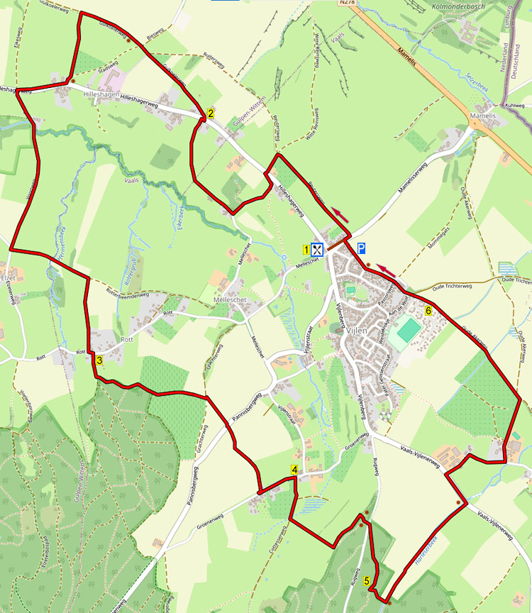 Midden tussen de groene heuvels van Zuid-Limburg, ligt nabij Mechelen de buurtschap Hilleshagen. Tijdens deze heuvelachtige en panoramische wandeling start u vanaf Vijlen. U wandelt langs weilanden naar Hilleshagen en naar de buurtschap Rott en dan langs bosranden en door een maïsveld naar de buurt Groenenweg. U wandelt door een weiland omhoog naar de rand van het Vijlenerbos en dan door weilanden omlaag naar de buurtschap Harles. U volgt een panoramische veldweg naar de rand van Vijlen. Neem zelf proviand mee, onderweg staan enkele zitbanken met mooi uitzicht. Ondanks het hoogteverschil zitten er geen steile hellingen in deze route en is deze voor iedereen geschikt.