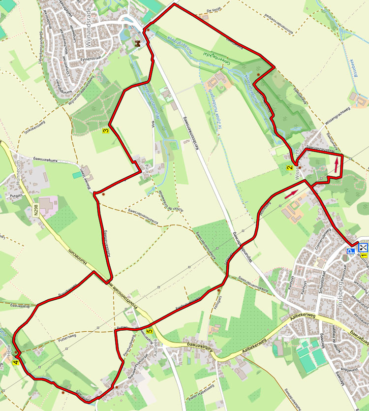 Tijdens deze licht heuvelachtige maar gemakkelijke wandeling klimt u via leuke bospaadjes naar een plateau en dan loopt u via een mooie veldweg naar het prachtige Kasteel Wijnandsrade. Via een leuk voetpad komt u in de buurtschap Vink en dan wandelt u door de velden naar de buurtschap Helle. U loopt via een prachtig paadje langs de Platsbeek naar Aalbeek en via veldwegen met mooi uitzicht komt u weer in Hulsberg waar een fijn terras is.