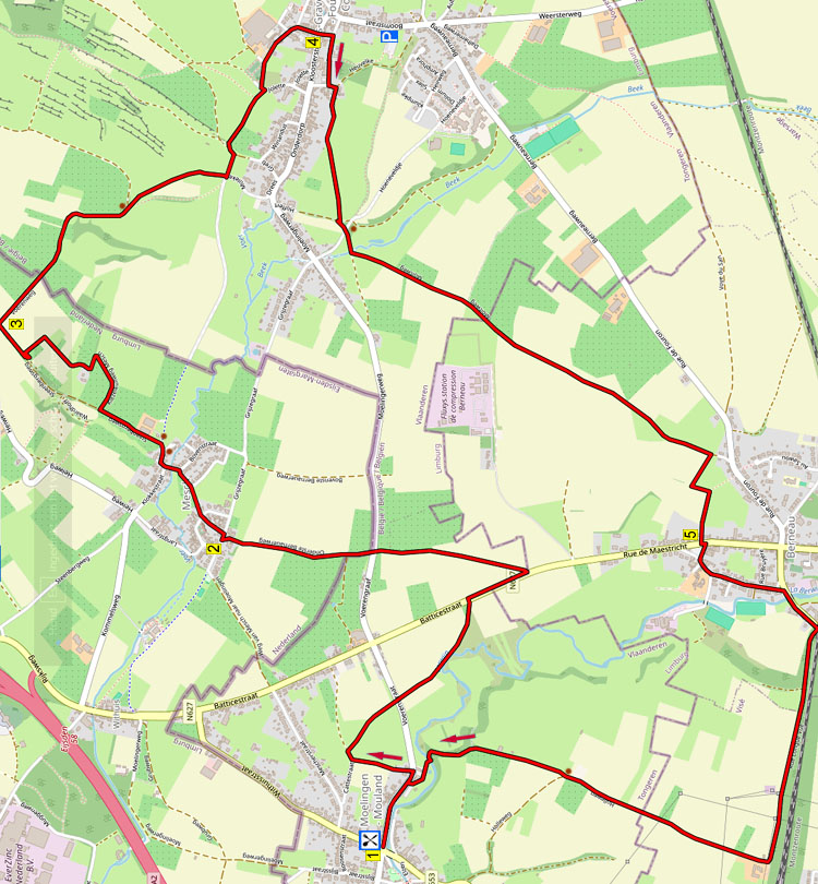 ’s Gravenvoeren waar u kunt pauzeren en dan wandelt u door velden naar Bernau. Hier klimt u naar een mooi plateau en wandelt u via een mooi hol pad af naar de Berwinne. Aan het einde is een fijn terras. U kunt ook starten in ’s Gravenvoeren op de parkeerplaats aan de Boomstraat 41 en dan fijn lunchen bij Brasserie De Berwien in Moelingen.(Tijdelijk Gesloten )