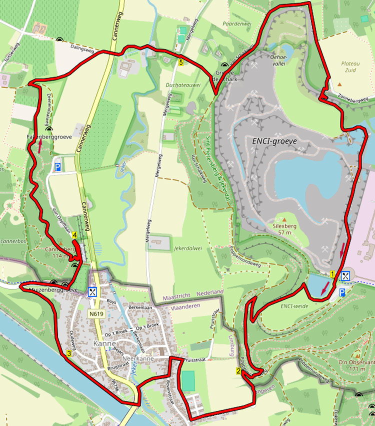 Chalet D’n Observant ligt ongetwijfeld op de meest unieke locatie in Nederland! Tijdens deze heuvelachtige en grensoverschrijdende wandeling klimt u de Sint-Pietersberg omhoog en na een stuk door het ENCI-bos daalt u via leuke voetpaadjes af naar Kanne. Na een stuk langs het Albertkanaal komt u bij het prachtige Château Neercanne en klimt u met een prachtig uitzicht omhoog door het Cannerbos. Boven op de Cannerberg volgt u een prachtig bospaadje en een heel leuk graspaadje met schitterend uitzicht. U daalt af naar de Nekummerhoeve aan de Jeker en dan klimt u weer de Sint-Pietersberg aan de andere zijde omhoog. Na enige tijd komt u bij de schans boven de groeve met geweldig uitzicht in de groeve, uniek in Nederland. U daalt via de trappen af in de groeve en dan komt u bij het chalet waar u nog iets kunt eten of drinken. U kunt ook starten op de gratis parkeerplaats van Château Neercanne en dan fijn pauzeren of lunchen in de groeve bij Chalet D’n Observant.