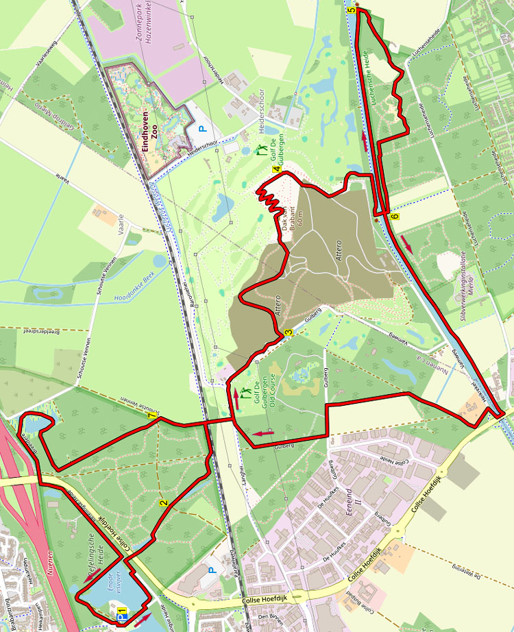 “Het Dak van Brabant” oftewel het land van Gulbergen is een oude vuilstortplaats van 60 m hoogte en is nu prachtig met gras begroeid. Boven heeft u een prachtig uitzicht. Tijdens deze gemakkelijke wandeling met dus 1 heuvel wandelt u over leuke bospaadjes door de Refelingsche heide en dan steekt u de spoorlijn over. U klimt via een voetpad naar de top van de Gulberg en daalt zigzaggend af langs een golfbaan. U volgt een prachtig pad langs het Eindhovensch Kanaal en voordat u de bossen induikt kunt u naar een zitbank lopen, een fijn pauzeplekje na 5,4 km. Na weer een mooi stuk langs het kanaal loopt u door het bos naar de spoorlijn en via mooie bospaadjes loopt u naar het prachtig gelegen Gulbergsven waar u omheen wandelt. Via een leuk pad langs de Enode Visvijver loopt u terug naar de parkeerplaats. De afdaling van de Gulberg gaat langs mountainbikepaadjes maar als het druk is kunt u over het gras omlaag lopen. Doe deze wandeling dan ook bij voorkeur door de week en niet in het weekend.