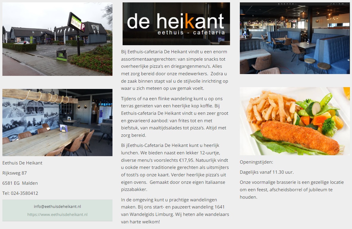 Tijdens deze gemakkelijke en bosrijke wandeling, volgt u eerst een graspad en voorbij enkele bedrijven volgt u een prachtige bomenlaan/fietspad langs het Maas-Waalkanaal. Via leuke bospaadjes door natuurgebied Elshof loopt u naar de Rijksweg en dan duikt u de bossen in van Heumensoord. Via mooie heidepaadjes komt u bij een grote zandvlakte met zitbanken waar u kunt pauzeren. Na weer een stuk door de bossen wandelt u, over veldwegen langs een paardenranch, terug naar Eethuis De Heikant met fijn terras. Tip: U kunt ook starten op de grote parkeerplaats aan de Kluissestraat en dan fijn pauzeren bij De Heikant.