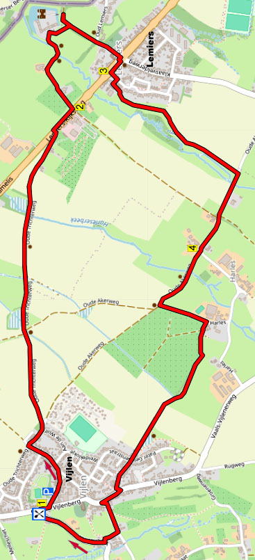 Tijdens deze gemakkelijke, licht heuvelachtige wandeling wandelt u over een veldweg omlaag en via een voetpad komt u bij Kasteel Lemiers.  Via een weiland komt u in de buurtschap Harles en dan volgt u een voetpad naar Vijlen. U daalt een trappenpad af en dan loopt u omhoog naar het terras met prachtig uitzicht. Onderweg staan zitbanken om te pauzeren.