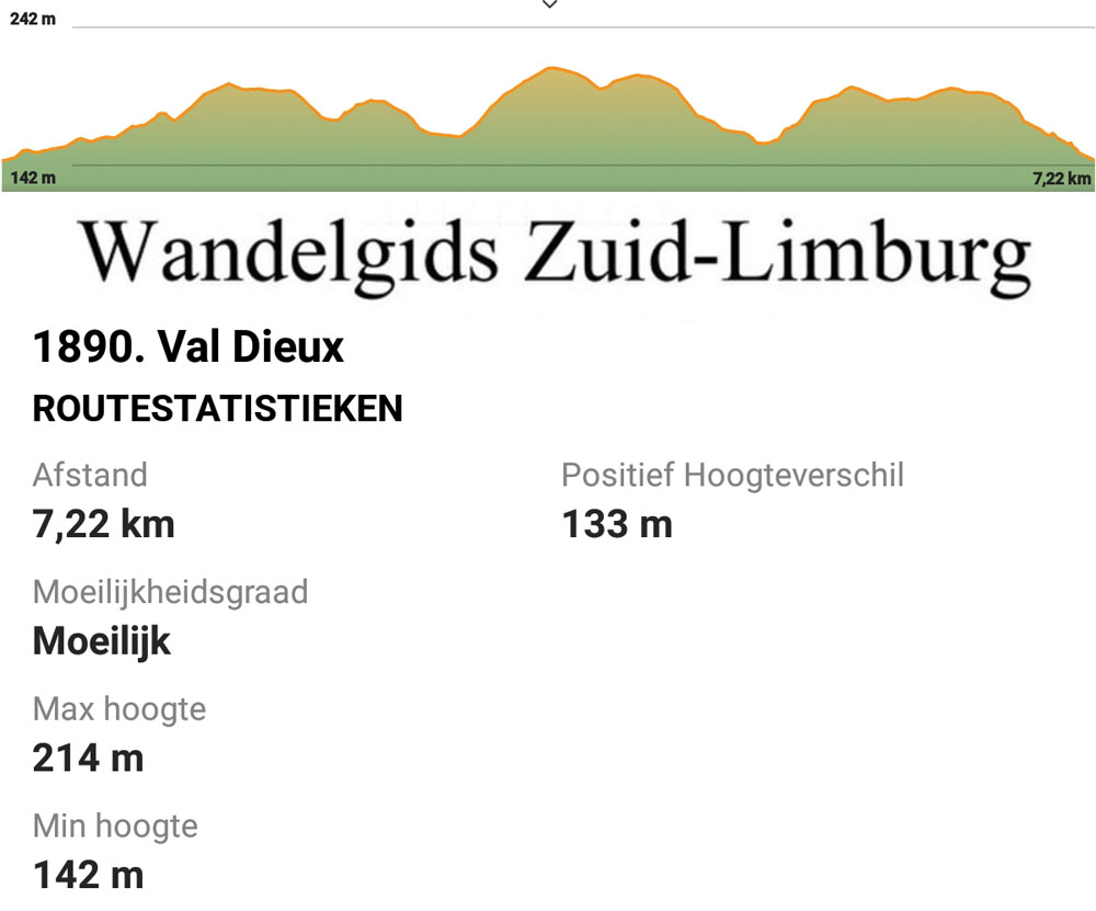 Midden in het land van Herve ligt de bekende Abdij Val-Dieu. Tijdens deze heuvelachtige en zeer panoramische wandeling verlaat u de abdij via een voetpad en dan struint u geruime tijd door weilanden met klaphekjes en prachtige uitzichten. U komt in de buurtschap Houyeux en dan gaat het over veldwegen en voetpaden met prachtige uitzichten langs enkele kleine gehuchten. Via een mooi bospad en een stuk door de weilanden komt u bij de abdij die u kunt bezoeken. In het laatste stukje zit een klein steil moeilijk trapje omlaag waarbij een stok handig is. Er is ook een alternatief.